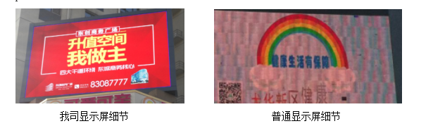 2、普通SMD燈點(diǎn)表面面積比較大,做成的顯示屏背景呈白色,對比度很差,燈點(diǎn)反光又比較強(qiáng),無法顯示高灰度圖像,無法到達(dá)真彩效果。