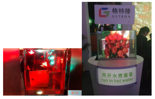 1、測試實(shí)驗(yàn)如下圖,屏體可在零下39.55度的環(huán)境下及100度的沸水浸泡下正常工作。