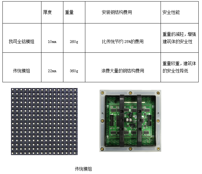 我司全鋁質(zhì)模組和普通模組厚度和重量對比表: