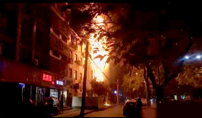 11月19日晚,西安市桃園南路一處建筑的外立面起火。從現(xiàn)場視頻可以看出火勢較大的位置位于這棟建筑的二層和三層。