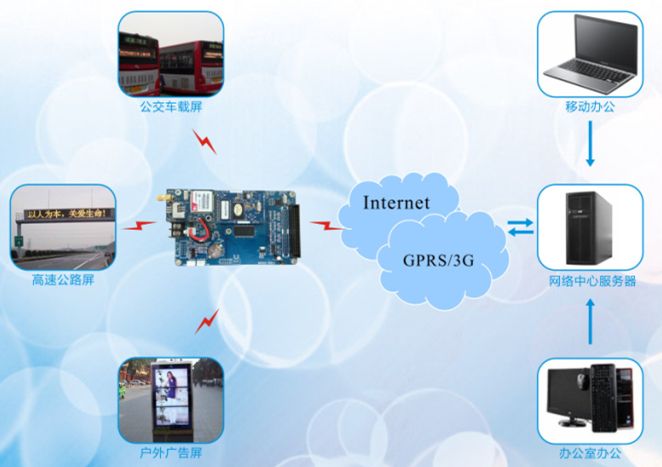 工作原理:3G模塊也通過無線網(wǎng)絡(luò)連接到數(shù)據(jù)中心服務(wù)器,客戶直接登錄到全球協(xié)同內(nèi)容云平臺發(fā)布計劃,并從服務(wù)器直接傳輸?shù)娇刂瓶ā?br />